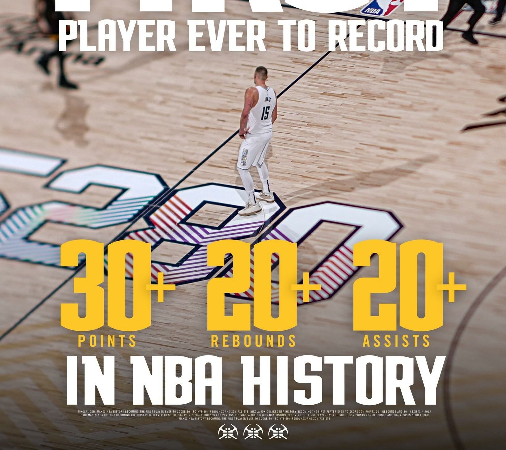 Srpski centar postao prvi igrač NBA lige sa barem 30 poena, 20 skokova i 20 asistencija