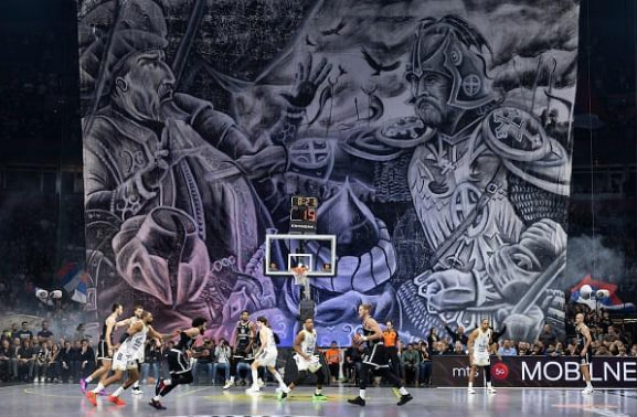 Utakmicu je obeležio i ogroman transparent na kom je prikazana scena u kojoj Miloš Obilić ubija Murata Prvog.