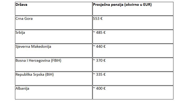 Regionalni kontekst: Crna Gora predvodnik po visini penzija