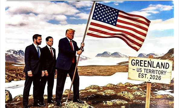 HomeSvijet(FOTO) Tramp objavio sliku na kojoj pobada američku zastavu na Grenlandu