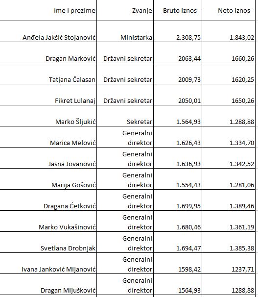 Sekretar ministarstva Marko Šljukić primio je neto zaradu od 1.288 eura.