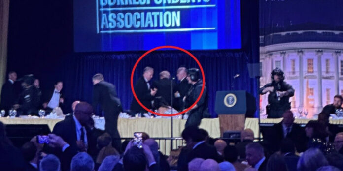 Donald Tramp i prva dama Melanija Tramp udaljeni su sa večere Udruženja dopisnika Bijele kuće od strane agenata Tajne službe nakon što je muškarac otvorio vatru iz sačmarice na bezbjednosno osoblje.