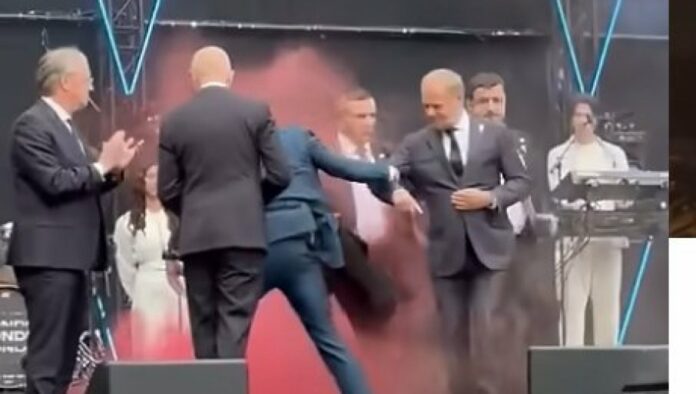 Poslije incidenta, obezbjeđenje je hitno evakuisalo Tuska sa mjesta događaja.