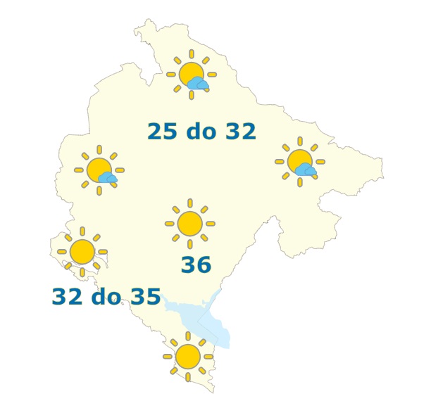 U Crnoj Gori sjutra će biti pretežno sunčano, sa najvišom dnevnom temperaturom do 36 stepeni.