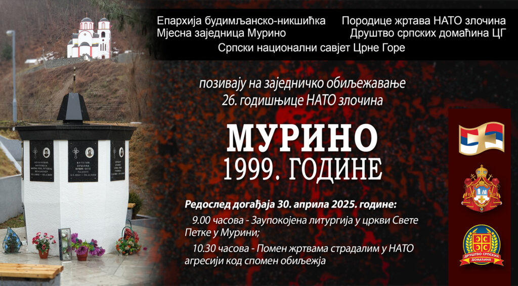 U okviru predviđenog programa episkop budimljansko-nikšićki Metodije služiće svetu arhijerejsku liturgiju u hramu Svete Petke, nakon čega će kraj spomen-česme u centru Murina održati parastos nevino stradalim žrtvama.
