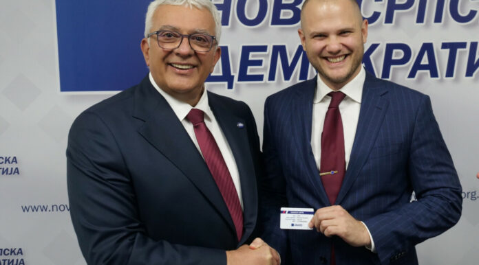 Mandić je uručio ovom prilikom članske karte Nove srpske demokratije Maksimu Vučiniću, Aleksandru Rovčaninu, bivšem predsjedniku IO Radničke partije i Sanji Krkeljić, funkcionerki Radničke partije.