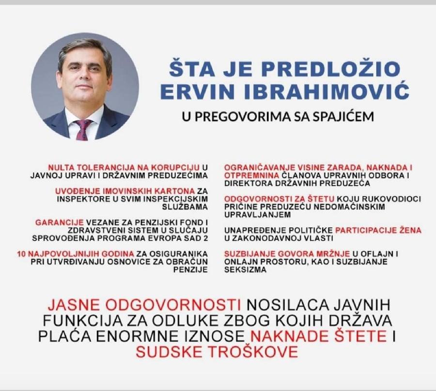 Predsjednik Bošnjačke stranke Ervin Ibrahimović zadovoljan je tokom konsultacija o formiranju vlade sa predstavnicima Pokreta Evropa sad. Poručio je da su principi PES-a prihvatljivi za BS i da su dobra podloga za temelje buduće vlade, kao dopuna njihovima.