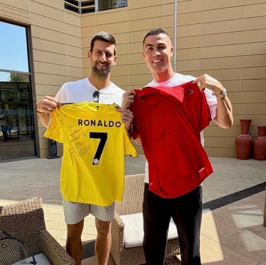 Tom prilikom, Ronaldo je Novaku poklonio dres Al Nasra sa svojim čuvenim brojem 7, dok mu je Đoković uzvratio potpisanim reketom i crvenom Lakosta majicom. Na reketu je, kao simpatičan detalj, stajao i natpis „Siuuu“ – slavlje kojim Portugalac obilježava svoje golove.