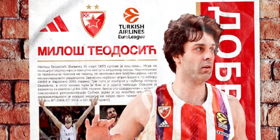 „Proslavljeni srpski košarkaš i jedan od najtrofejnijih igrača naše zemlje, Miloš Teodosić, novo je pojačanje KK Crvena zvezda Meridianbet!Dobro došao Teo!“, poručili su crveno-bijeli.