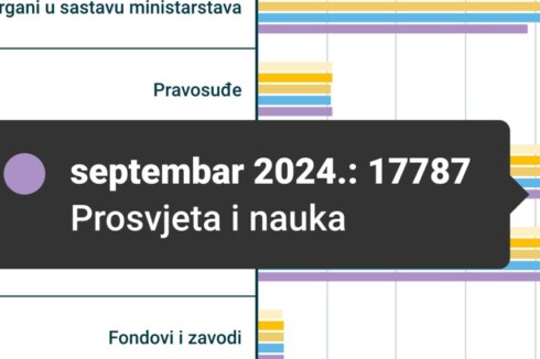 Zaposlenih u javnoj upravi na centralnom nivou u septembru bilo je 46.534, a na lokalnom nivou 7.114 što nas dovodi do ukupnog broja 53.648 zaposlenih., pokazuju podaci Ministarstva javne uprave