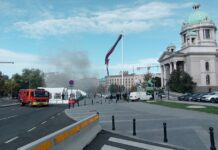 Na platou ispred Narodne skupštine u Beogradu desila se pucnjava, a nakon toga i požar, prenose srpski mediji. Kako javlja Kurir, Vladan A. (70) uhapšen je ispred Skupštine Srbije zbog sumnje da je pucao i ranio Milana B. (57). Sumnja se da je uhapšeni pucao, potom zapalio jedan šator ispred Skupštine u i bacio šaku … Настави са читањем (VIDEO) Pucnjava ispred Skupštine Srbije: Osumnjičeni ranio jednu osobu, zapalio i šator
