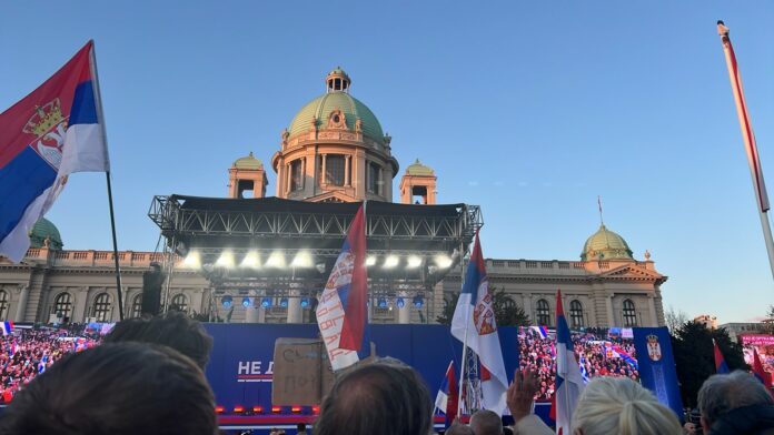 Predsednik Srbije Aleksandar Vučić na skupu „Ne damo Srbiju“ zahvalio je svima koji su došli u Beograd, a posebno se zahvalio Srbima sa Kosova.